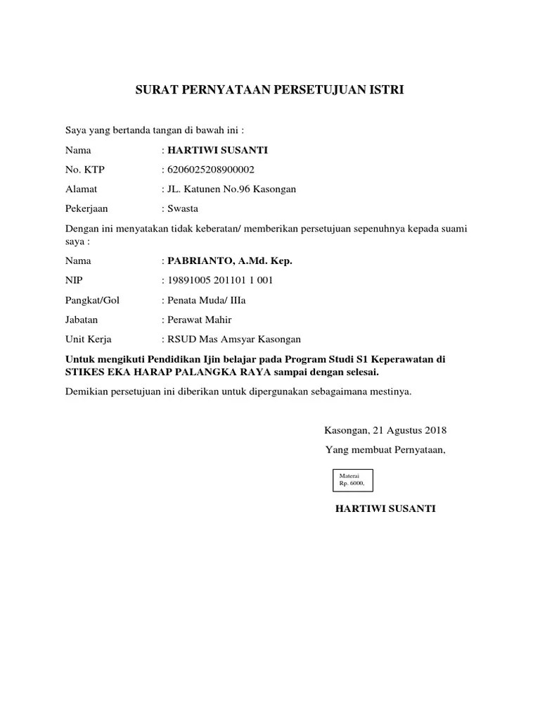Bagi anda yang sudah berkeluarga dan ingin bekerja di luar negeri tentunya akan dimintai surat izin dari suami untuk menyetujui bahwa anda akan bekerja di .